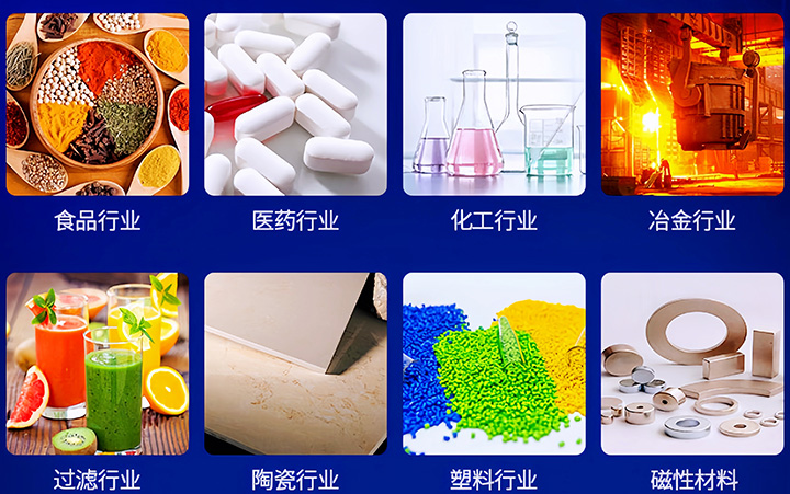 应用范围:食品类,化工类,冶金制药类,矿石耐火材料类等