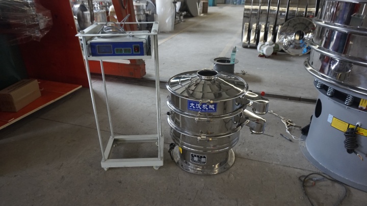 中药超细粉超声波振动筛是用于200-623目范围内的中药超细粉精细筛分和除杂的,由于200目以上的中药超细粉具有高静电,受潮粘性大,易团聚,吸附性强等特点,我们在筛分时选用带超声波清网装置的振动筛,给中药超细粉同时施加3.6万次/分钟的高频超声波和机械振动,可以打散团聚,破除表面张力,提高筛网透网效率,避免网孔堵塞。